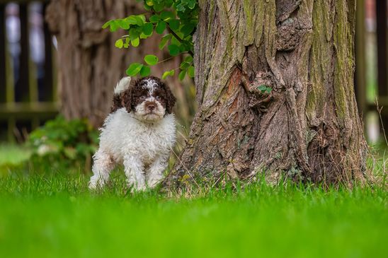 Ein paar Schnappschüsse aus dem Garten. Einfach auf ein Bild klicken, dann werden diese größer. Lagotto Romagnolo Welpen in Action.